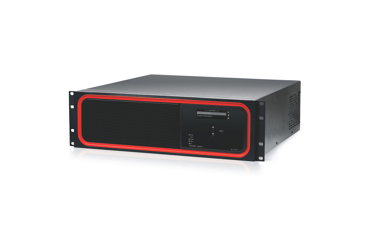 Tesira? SERVER-IO 是一種數(shù)字網(wǎng)絡(luò)服務(wù)器,用于 Tesira 數(shù)字音頻網(wǎng)絡(luò)平臺(tái)。它在出廠時(shí)配置有一張 DSP 卡,但能支持兩張額外的 DSP 卡。 SERVER-IO 可以為每個(gè)服務(wù)器配置總共多達(dá)三張音頻網(wǎng)卡。網(wǎng)卡的組合可在任意配置中包括多達(dá)兩張AVB-1(音頻視頻橋接)網(wǎng)卡,多達(dá)兩張SCM-1 CobraNet?網(wǎng)卡以及多達(dá)兩張 DAN-1 Dante? 網(wǎng)卡。集成網(wǎng)卡可提供網(wǎng)絡(luò)連接以配置和控制Tesira網(wǎng)絡(luò)。SERVER-IO可支持多達(dá) 12張標(biāo)準(zhǔn)的Tesira I/O卡以提供48個(gè)音頻I/O通道(例如麥克風(fēng)和線輸入、VoIP和標(biāo)準(zhǔn)的電話接口)。DSP采用新型Biamp算法SpeechSense?,該算法通過更準(zhǔn)確地區(qū)分人類的語言和噪音來加強(qiáng)語言處理。DSP還提供了廣泛的音頻處理,包括但不限于:信號(hào)路由和混音、均衡、濾波、動(dòng)態(tài)和延遲以及控制、監(jiān)控和診斷工具,均通過Tesira 設(shè)計(jì)軟件配置。