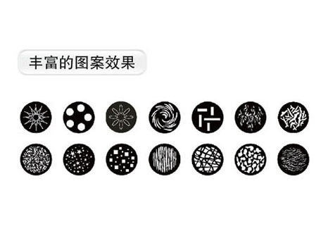1個旋轉(zhuǎn)圖案盤:18個可換圖案片,可安裝玻璃圖案片和金屬圖案片,可雙向變速旋轉(zhuǎn),具有索引功能,變速抖動效果、雙向變速流動效果