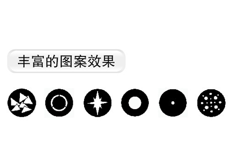 1個(gè)固定圖案盤,10個(gè)可更換圖案片(可選配),具有變速抖動(dòng)效果、雙向變速流動(dòng)效果