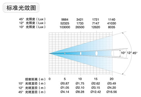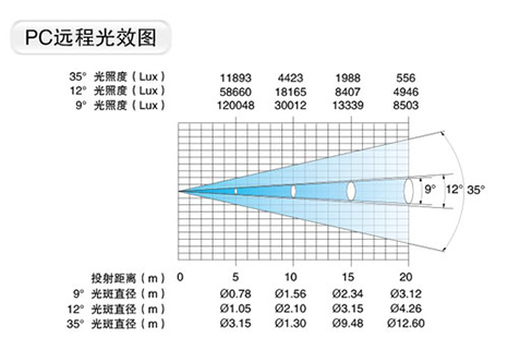 光束角度:9°高亮模式,12~35°線性調(diào)節(jié)