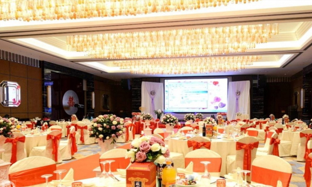 1、宴會(huì)大廳:滿足婚慶、報(bào)告型會(huì)議、文藝表演、高清視 頻展播、新聞發(fā)布、教學(xué)培訓(xùn)等,系統(tǒng)采用:美國(guó)Ev音響 系統(tǒng)、美國(guó)SHURE無(wú)線話筒、P4高清LED大屏幕、智能控制 系統(tǒng)。