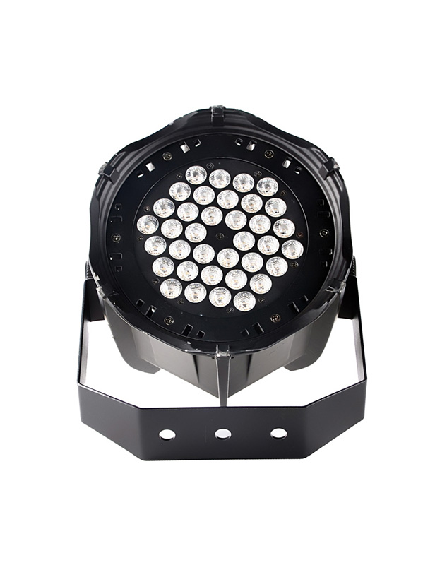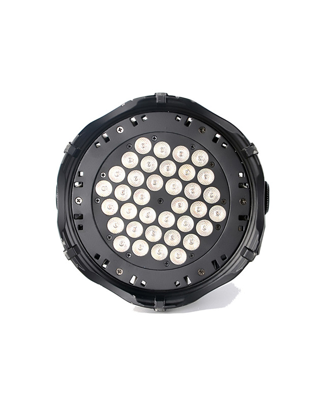 工作電壓:AC90-240V,50 60Hz額定功率:130瓦光 源:3瓦×36顆LED(R12;G12;B12)(1瓦36顆可選)光斑角度:15°-45°(可選)控制模式:DMX 5